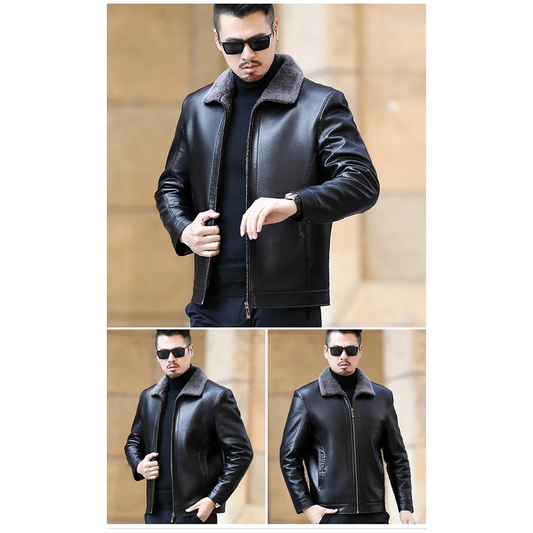 Funki Findz | Jackets | Men's Real Leather Warm Fur Collar Coat