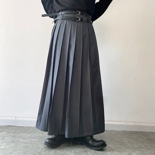 Funki Findz | Skirts | Men's Japanese High Waist Long Pleat Skirt