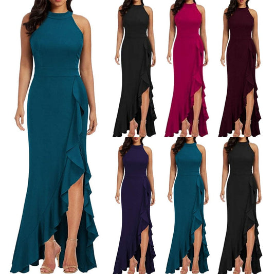Funki Findz | Dresses | Women's High Split Ruffled Hem Long Dress