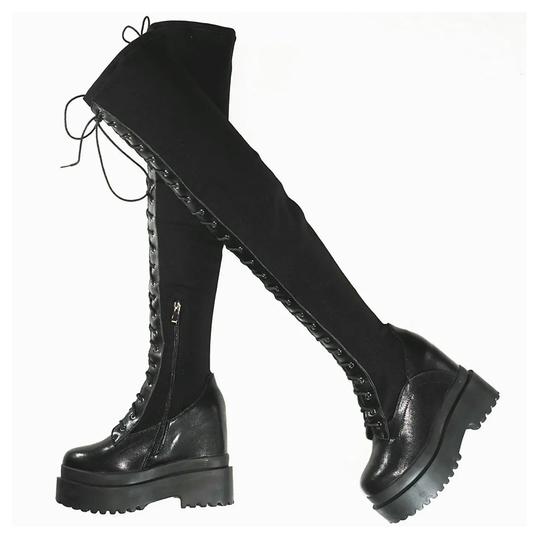 Funki Findz | Boots | Women's Leather Over Knee Wedge Boots