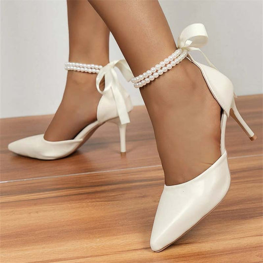 Funki Findz | Shoes | Women's Pearl and Satin Tie Bridal Shoes
