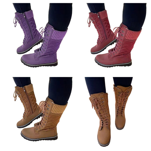 Funki Findz | Boots | Women's Plush Mid-Calf Lace Up Flat Boots