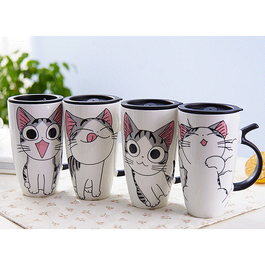 Funki Findz | Mugs | Large Ceramics Cat Mug | Spoon Lid | 20oz
