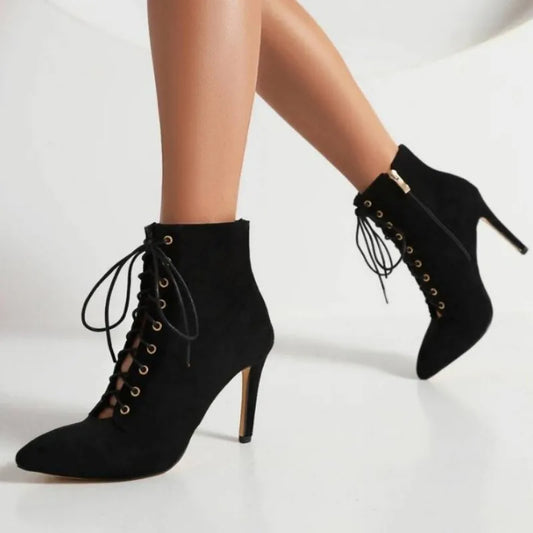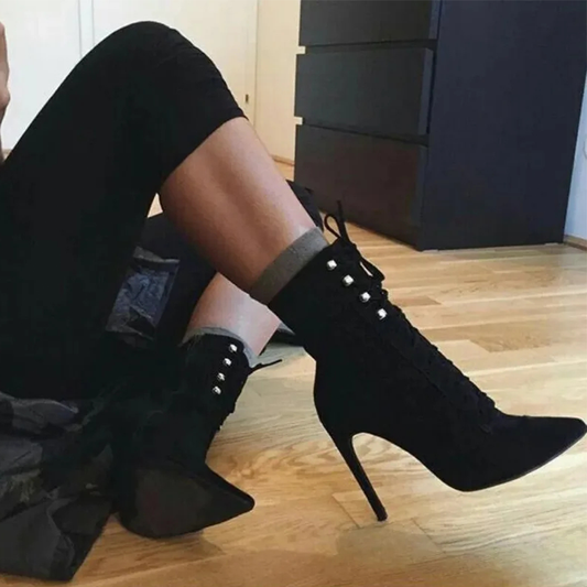 Funki Findz | Boots | Women's Suede Lace Up Stiletto Short Boot