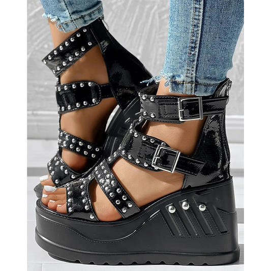 Funki Findz | Shoes | Women's Platform Stud Rivet Wedge Sandals
