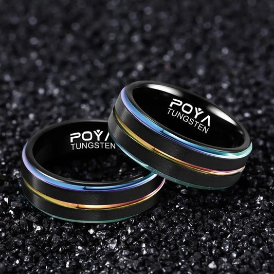 Funki Findz | Rings | Unisex Black Steel Rainbow Wedding Rings