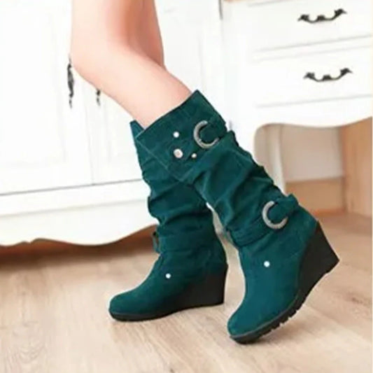 Funki Findz | Boots | Women's Mid-Calf Suede Wedge Stud Boot