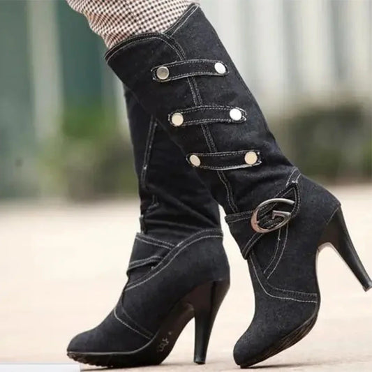 Funki Findz | Boots | Women's Knee High Denim Stiletto Boots