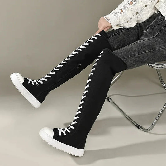 Funki Findz | Boots | Women's Over Knee Lace Up Canvas Boots