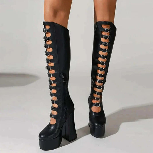 Funki Findz | Boots | Women's Cut Out Chunky Knee High Boots
