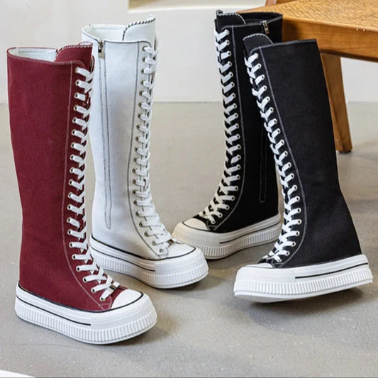 Funki Findz | Boots | Women's Lace Up Knee High Canvas Boots