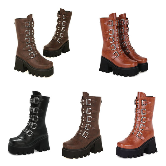 Funki Findz | Boots | Women's Platform Buckle Strap Wedges