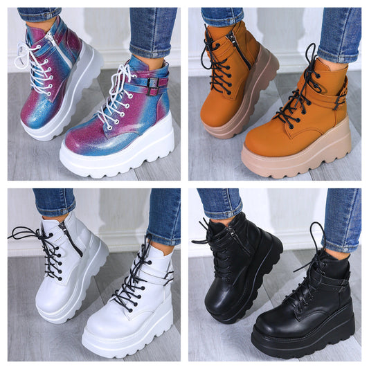 Funki Findz | Boots | Women's High Platform Buckle Ankle Boots