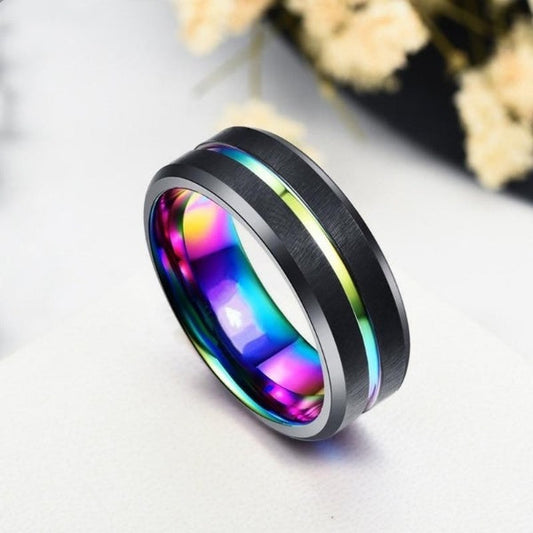 Funki Findz | Rings | Unisex Black Silver Rainbow Wedding Ring
