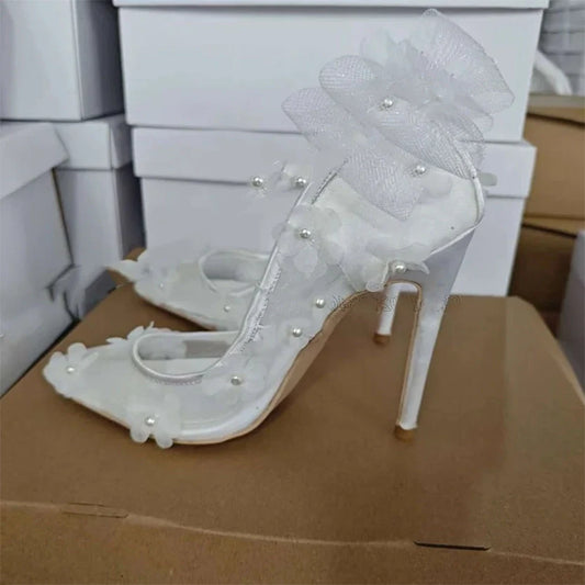 Funki Findz | Shoes | Women's Bow Knot Mesh Bridal Stilettos