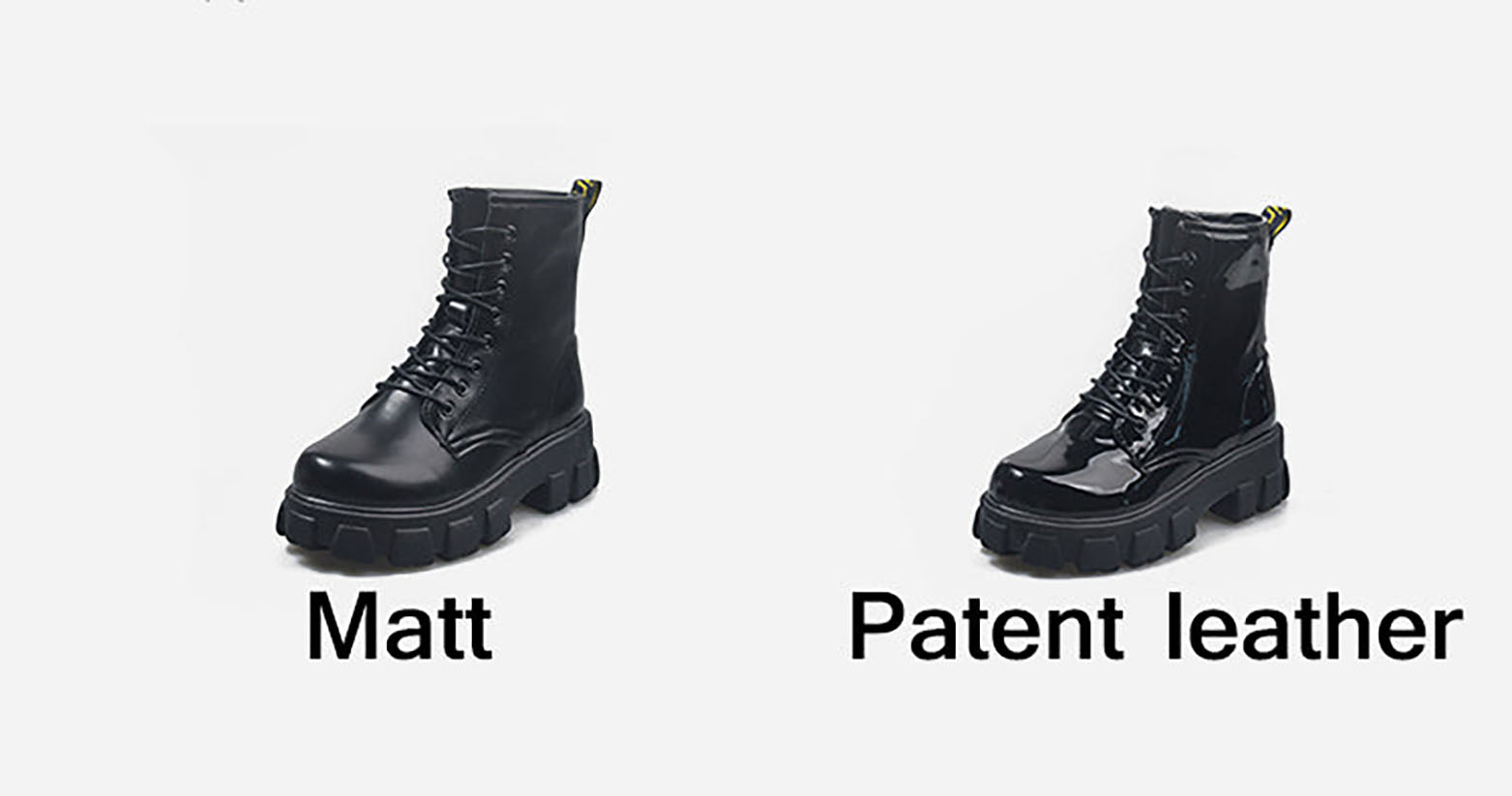 - Made from quality faux PU leather and featuring chunky, cleated, anti-skid platform soles, round toes, lace-up closure, heel pull tab, straps with outer lace up closures, seam detailing these combat style boots will be sure to please.
