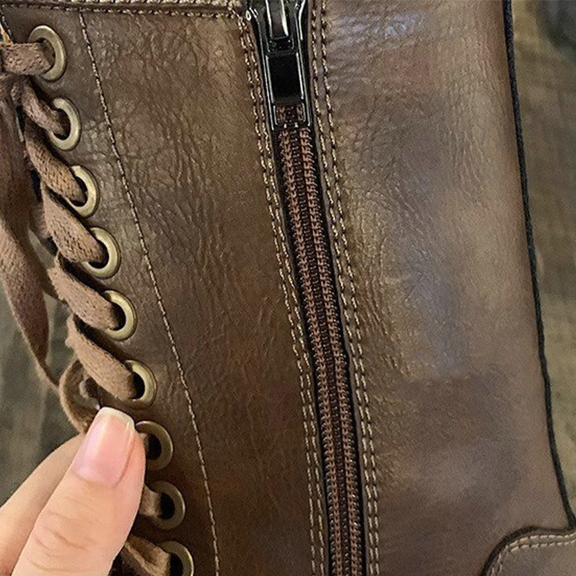 - Made from quality faux PU leather and featuring front lace up, side zip closure, round toes, low square heel, anti-skid platform soles, and seam detailing, these chunky platform boots are sure please.