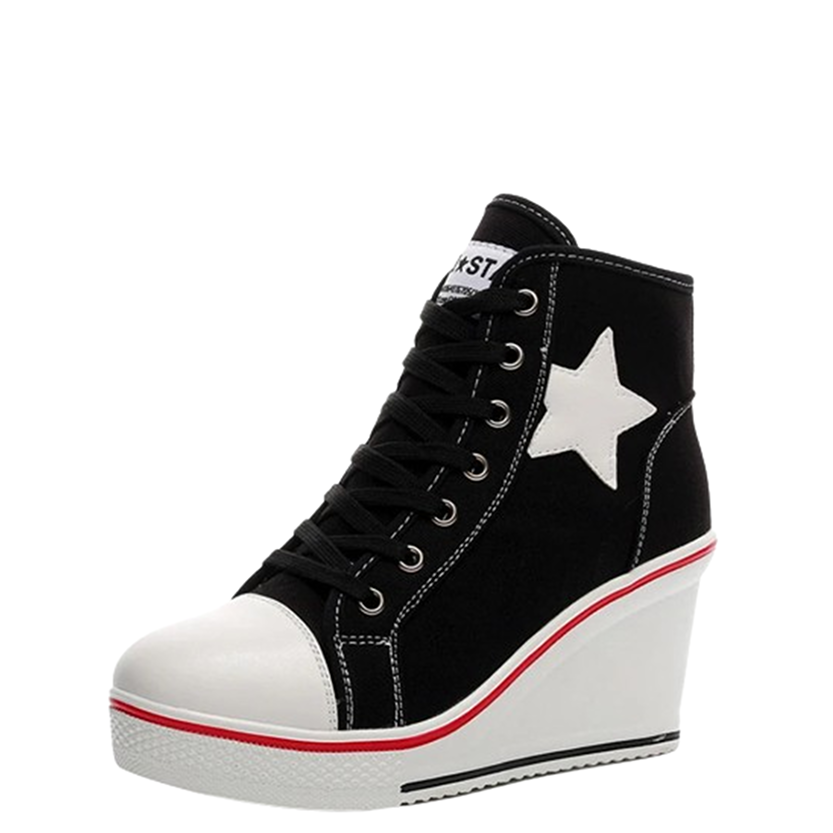 - Lightweight and durable with a round toe, decorative Star side motif, lace up front closure, hidden platform high rise wedge heels these stylish boots offer a snug but perfect fit while making them super easy to put on and take off.