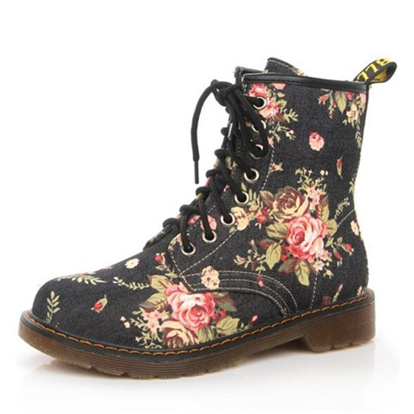 Our super cute flower print marten style canvas boots are the perfect way to channel your 90's grunge look and style them into a more modern, put-together outfit.