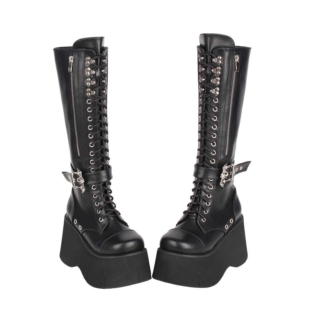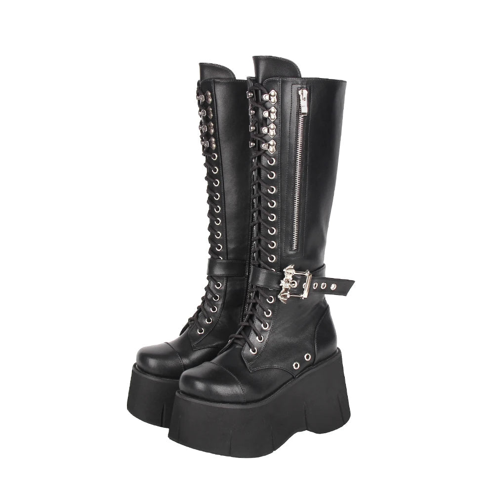 Gothic Punk Platform Boots, Knee High, High Chunky Platform Boots, Riding Boots, Long Boots, Zipper Boots. Biker Boots.