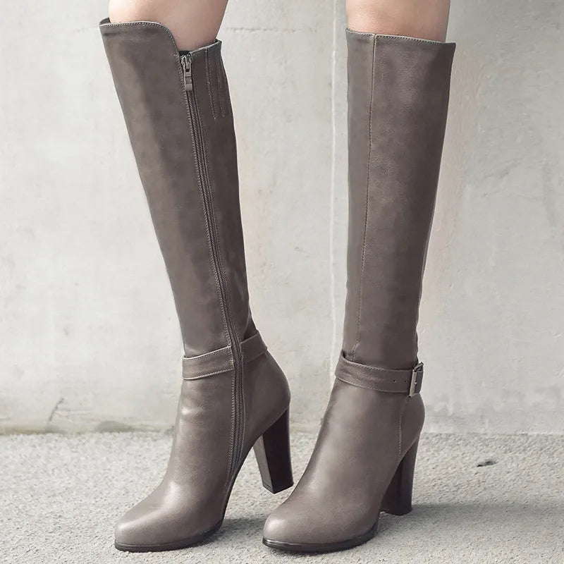 - Our chic high block heeled boots are your sure to get noticed. Super soft and comfortable they are made of quality PU Leather and feature round toe, gentle supportive arch, decorative buckle strap, inner side zip closure and seam detailing they offer a snug but perfect fit while making them super easy to put on and take off.