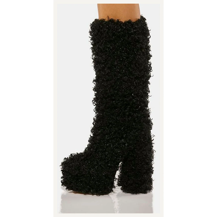 Get your groove on with these super cute knee high chunky platform boots. With their Unique Faux Wool High Block design these quirky boots are sure to make you stand out from the crowd. Add some fun to your next out fit with these Funky Fashion Statement Retro Boots.