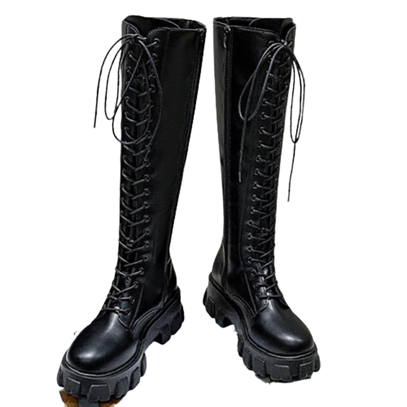 - Made from quality faux PU leather and featuring chunky, cleated, anti-skid platform soles, round toes, lace-up closure, heel pull tab, straps with outer lace up closures, seam detailing, and inside zip closure these combat style boots will be sure to please.