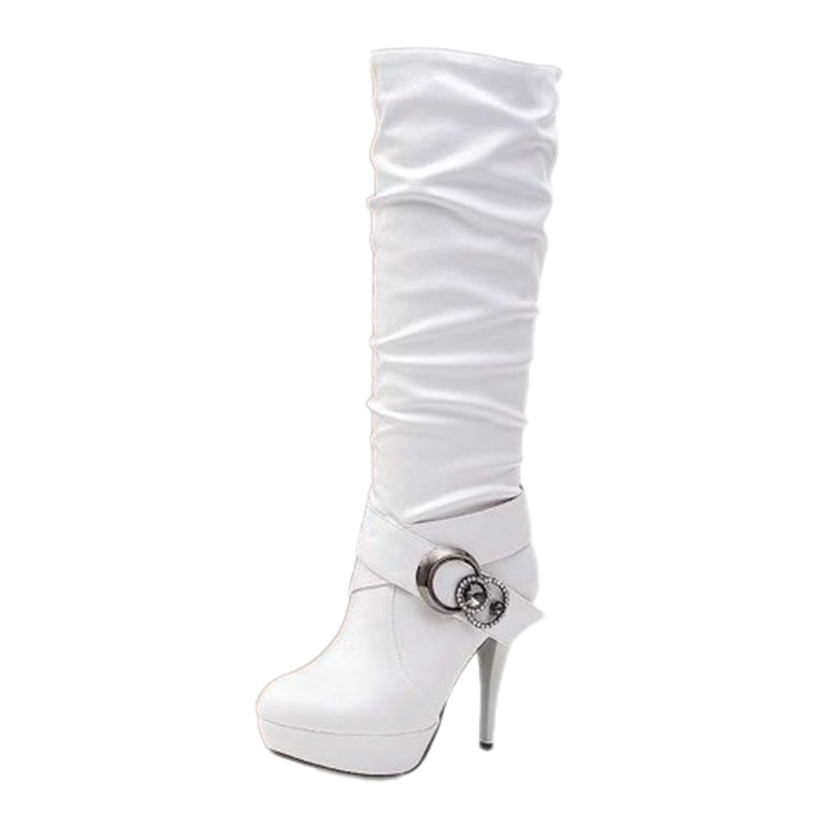 - Glamorous and a bit risque' you will get noticed walking into a room with these gorgeous stiletto boots. Super soft and comfortable they are made of quality PU suede leather and featuring round toe, gentle supportive arch, fitted straps, metal decorative buckles, full inner side zip and seam detailing these boots are a must have item for any wardrobe.