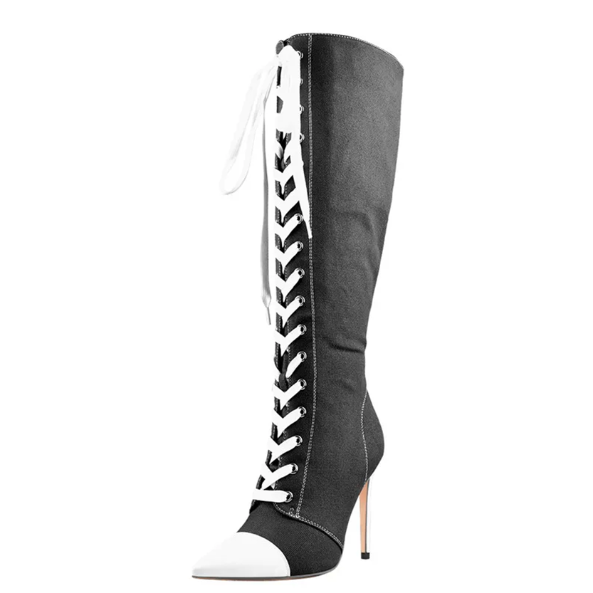 1 x Pair Lace Up Knee High Stiletto Boots.