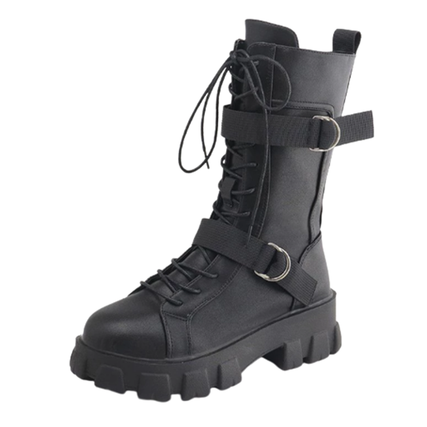 1 x Pair Gothic Chunky Combat Mid-Calf Boots.