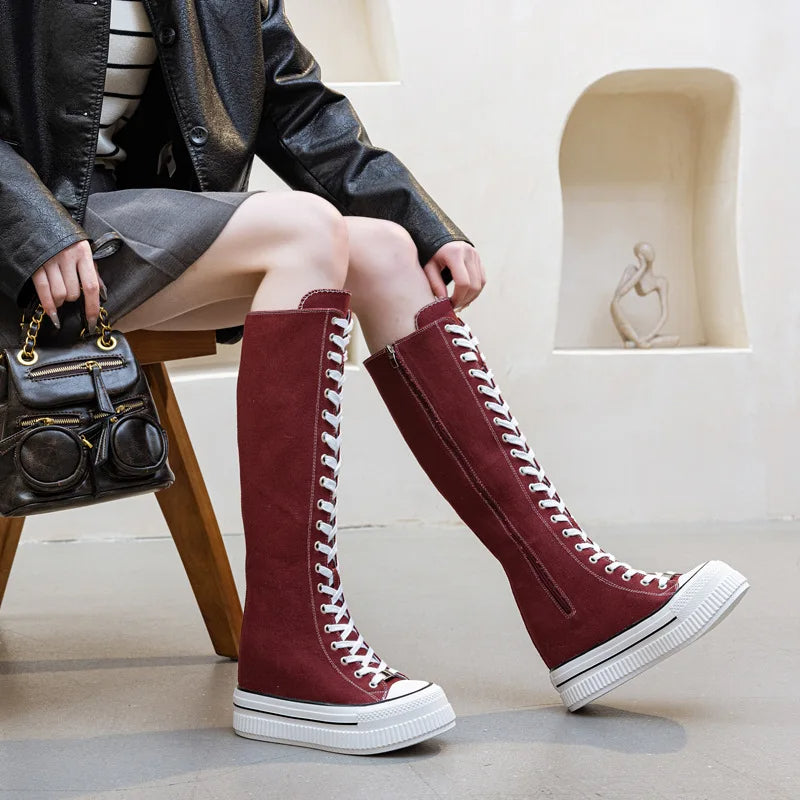 Women Shoes, Canvas Casual High Top Shoes, Long Boots, Lace-Up Zipper Boots, Flat Boots, Sneakers, Zipper Boots, Combat Boots, Gothic Punk Boots, Canvas Boots, Boots, Punk Boots, Gothic Boots. Black Women's Boots.