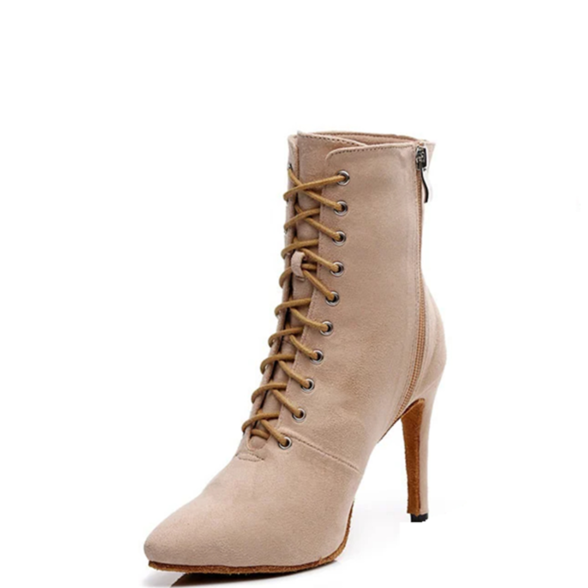 - Handcrafted in high quality suede leather they feature retro lace-up boot design with side zip up and front lace up closure, pointed toe, cushioned inner for comfort, ankle rise, and your choice of 2 styles of anti-slip soles, and heel heights these finely finished high stiletto boots will certainly get noticed.