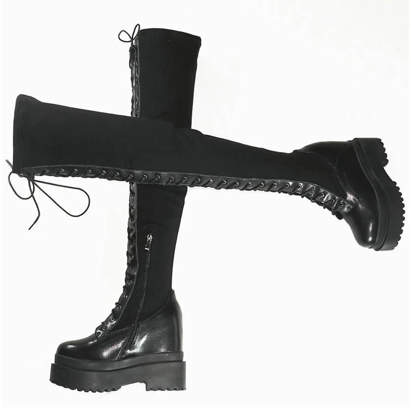 Looking to make a fashion statement? Then you can't go wrong with these awesome gothic, punk, high over-the-knee lace up boots.
