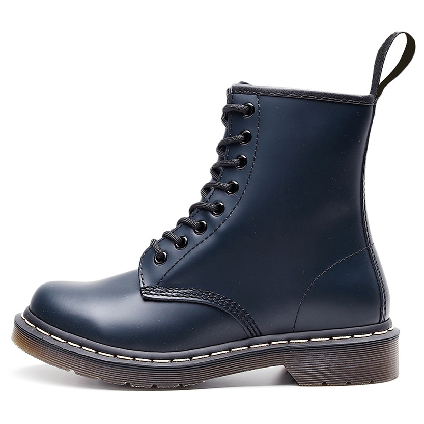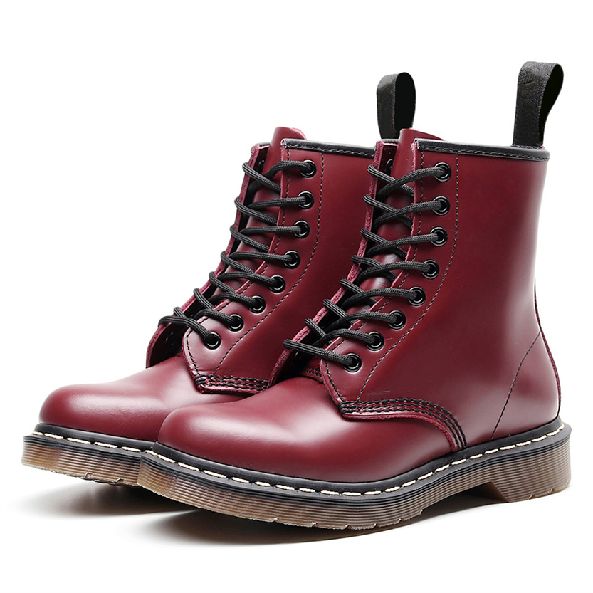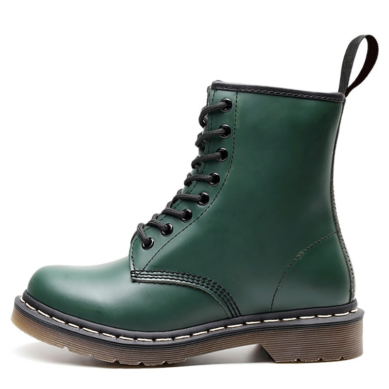 - Crafted with a Genuine Leather upper, a round toe, lace-up front closure, heel pull tabs, then set on a chunky block heel, anti-skid platform soles, seam detailing and finished with a coordinating Genuine Leather lining they are perfect for everyday wear or for something a bit more special. Choose them to give your looks an edgy marten themed twist.