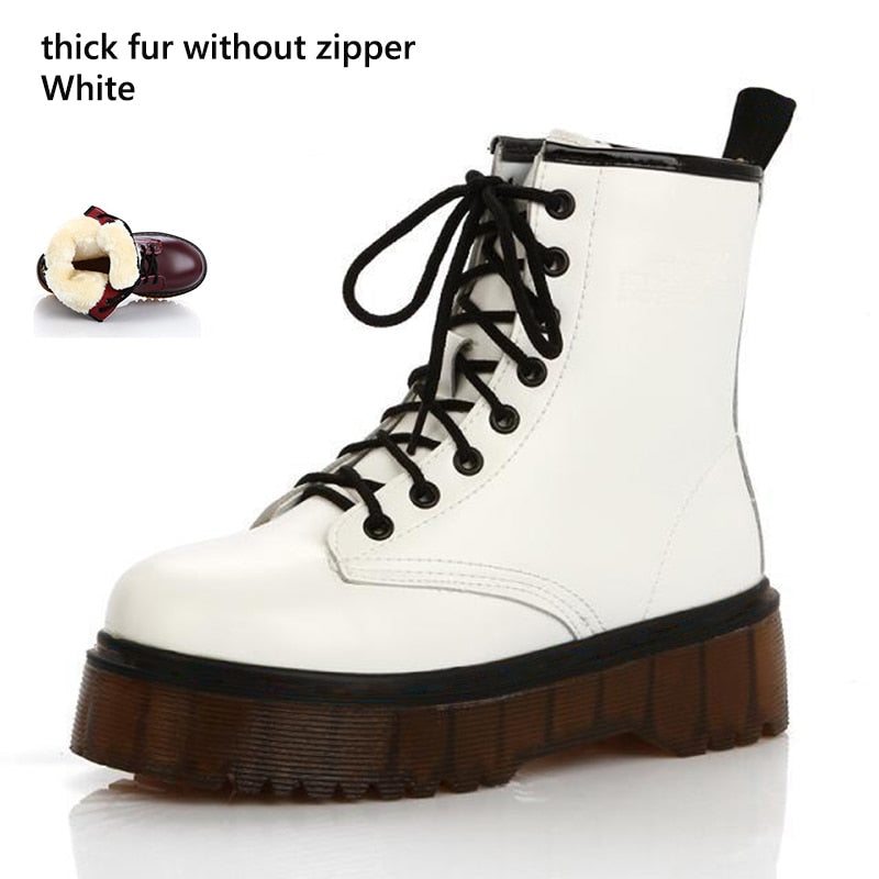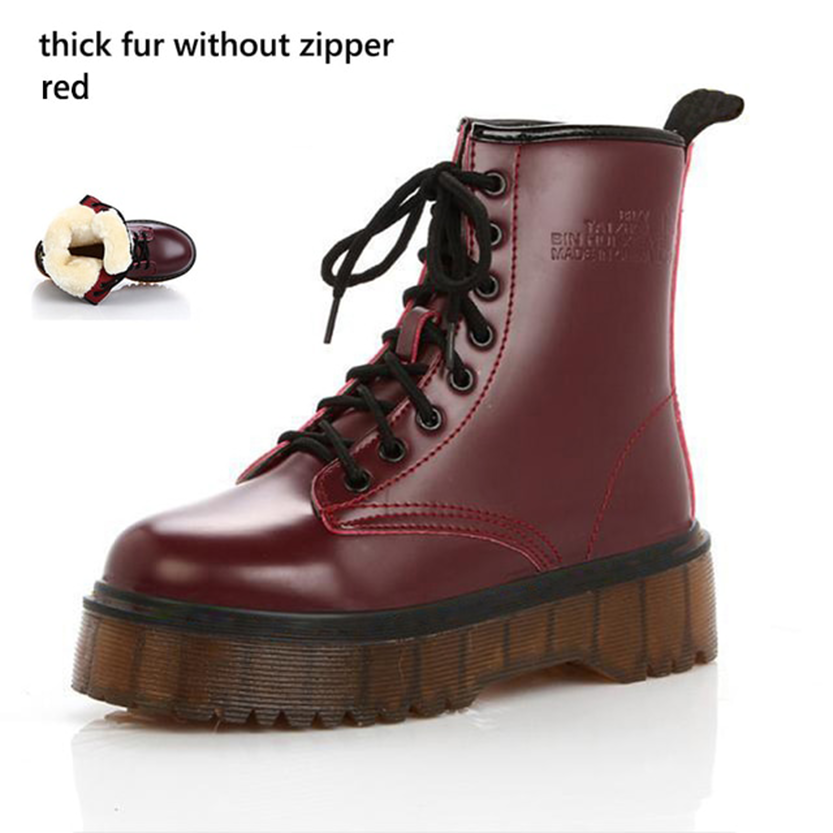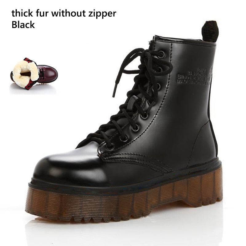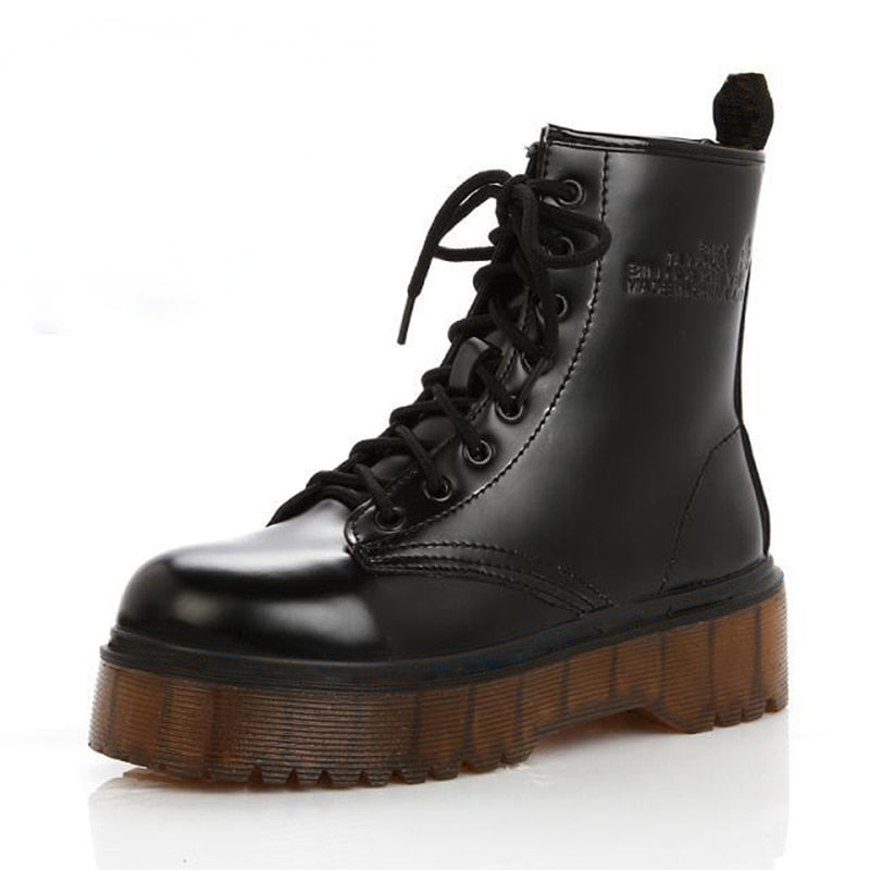 - Crafted with a PU leather upper, a round toe, lace-up front and side zip closure, heel pull tabs, then set on a chunky block heel, anti-skid platform soles, seam detailing and finished with a coordinating PU leather lining they are perfect for everyday wear or for something a bit more special. Choose them to give your looks an edgy marten themed twist.