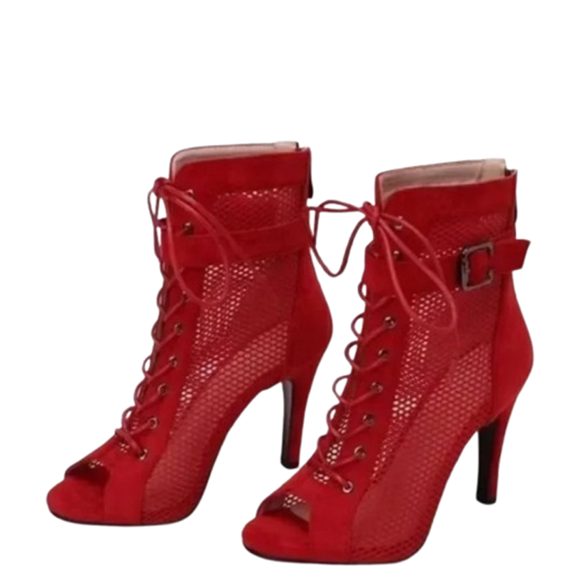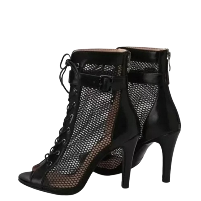 - These Victorian-inspired retro-renaissance style booties are crafted in beautiful PU leather and feature functional lace-up design, mesh side panels, lace up and zip up closure, open peep toe, cushioned inner, ankle rise, seam detailing, thin high heel, and anti-slip rubber soles, make these shoes feel like you’re walking on air. Super comfortable and easy to walk in, you will want to wear them all day, every day.