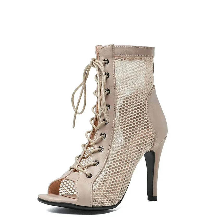 - These Victorian-inspired retro-renaissance style booties are crafted in beautiful PU leather and feature functional lace-up design, mesh side panels, lace up and zip up closure, open peep toe, cushioned inner, ankle rise, seam detailing, thin high heel, and anti-slip rubber soles, make these shoes feel like you’re walking on air. Super comfortable and easy to walk in, you will want to wear them all day, every day.