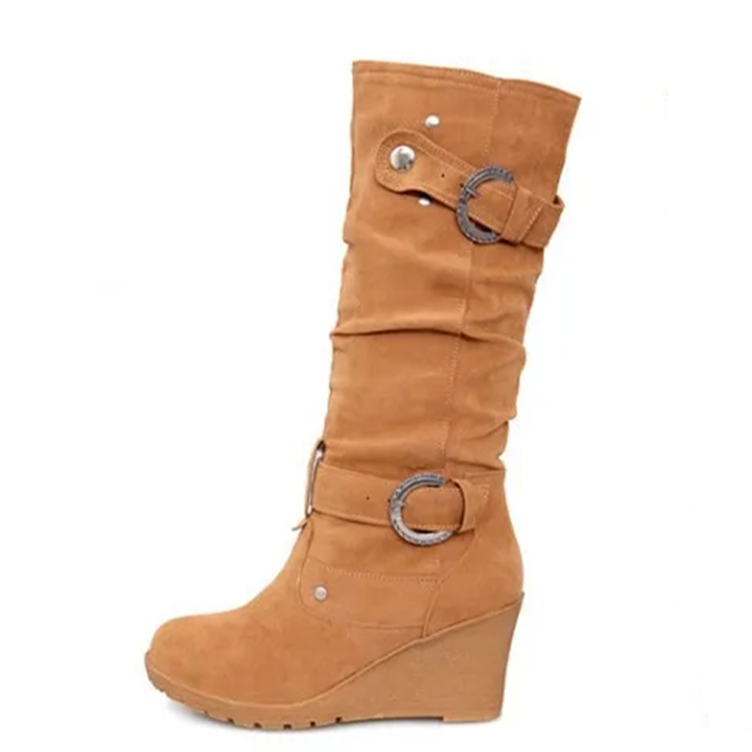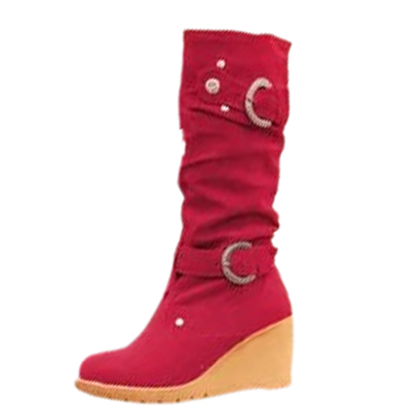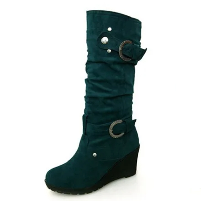 - These luxurious high heeled wedge boots are perfect for everyday wear. They sport 2 buckle strap design that provides both comfort and support for you during your busy day.