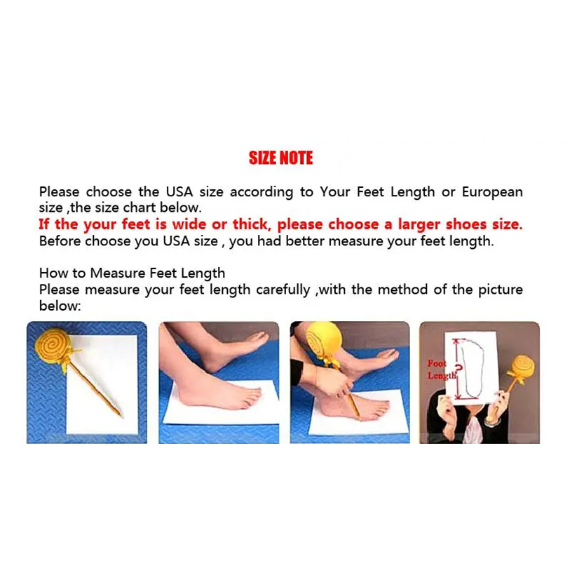 1. The US size or EUR size maybe different with your country, so please choose the size according to your foot length!