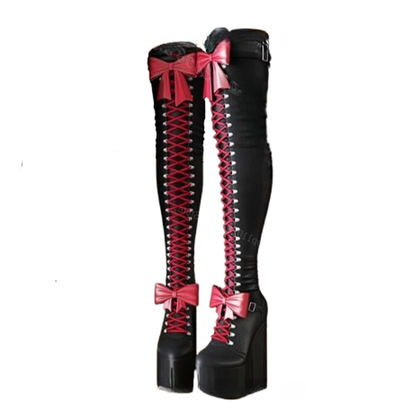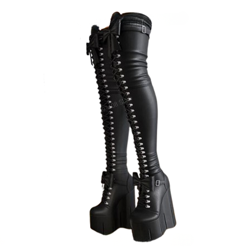 Gothic Punk Platform Boots, Over the Knee High Boots, High Chunky Platform Boots, Lace Up Boots, Long Boots, Tall Boots, Wedge Boots, Steampunk Boots