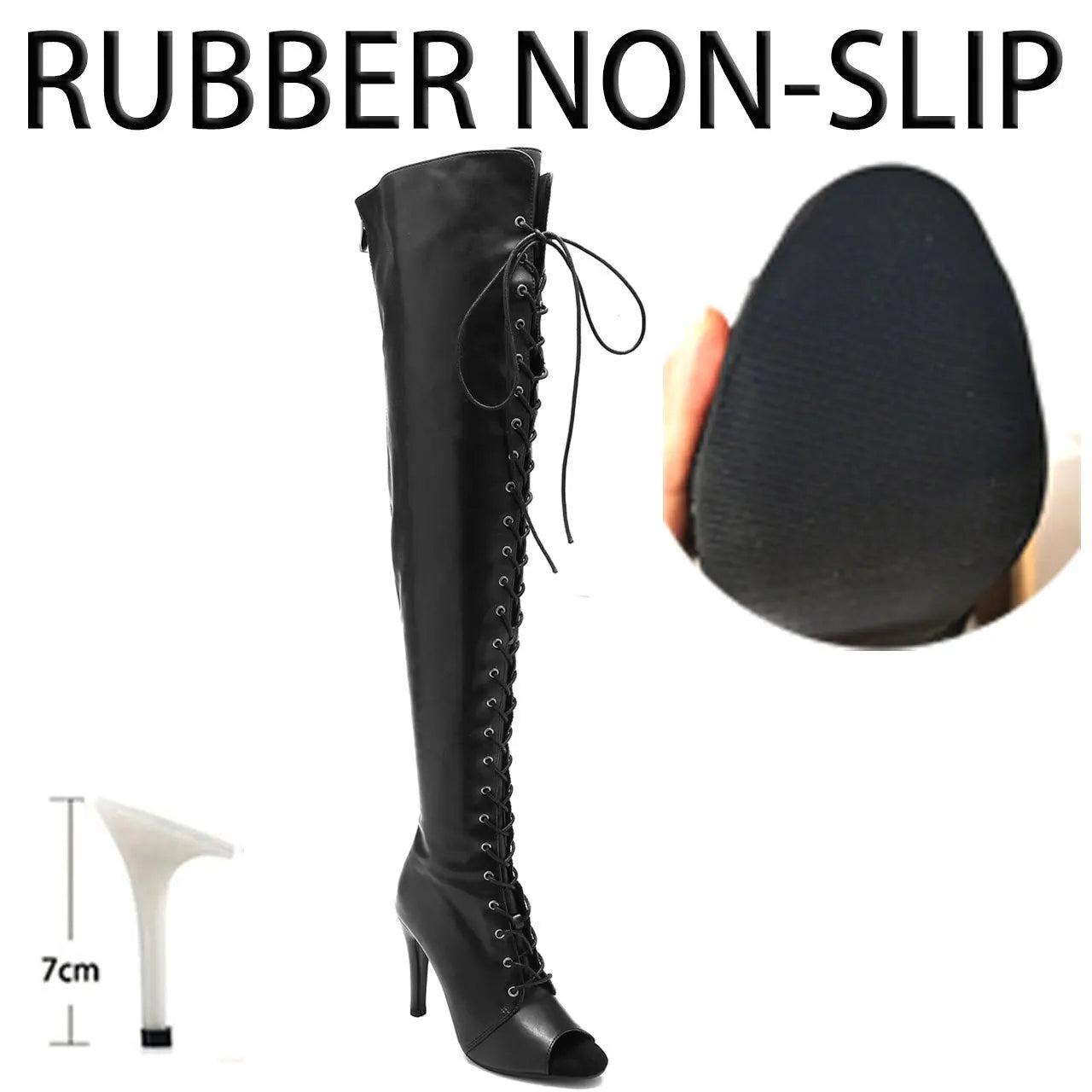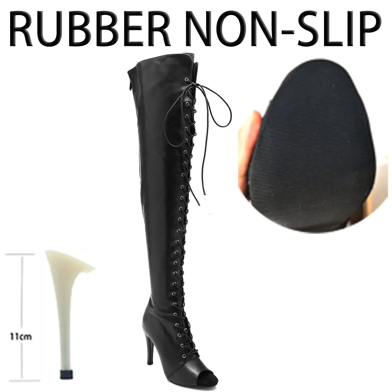 - These handmade, long, over the knee boots feature front lace-up design and inside zipper closure, round toe, cushioned inner, ankle rise, thin stiletto heel, and anti-slip rubber soles. The adjustable shoelaces ensure a secure fit, while the subtly padded footbed offers comfort for all-day wear. So comfortable you will feel like you're walking on air. Mid heels ensure these boots are easy to walk in, you will want to wear them all day, every day.