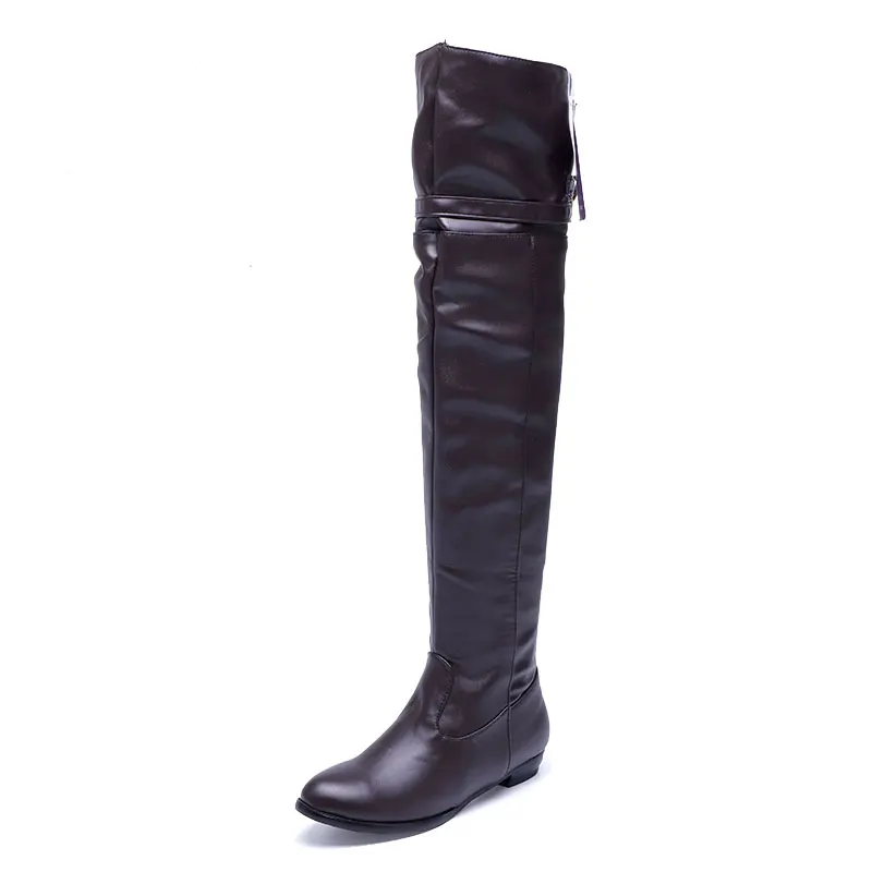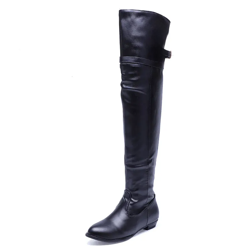 - These boots ooze sophistication. Modern, fashionable and built for comfort you will get noticed walking into a room with these fabulous riding style boots. Super soft and comfortable they are made of quality PU leather, and feature unique buckle strap design, easy pull and off closure, pointed toe, flat square heels, anti slip rubber soles, and seam detailing these boots are a must have item for any wardrobe