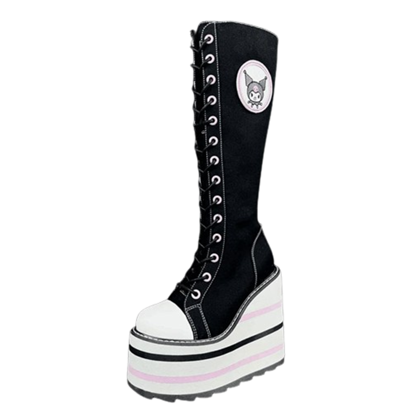 Women Shoes, Canvas Casual High Top Shoes, Long Boots, Lace-Up Zipper Boots, Flat Boots, Sneakers, Zipper Boots, Combat Boots, Gothic Punk Boots, Canvas Boots, Boots, Punk Boots, Gothic Boots. Black Women's Boots.