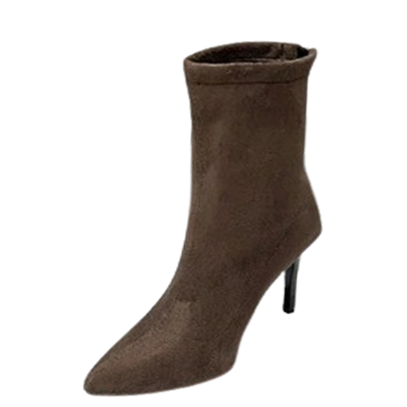 - Made from quality faux PU leather and stretch fabric, featuring elegant refined, design, with pointed toes, lace up zip up closure, anti-skid ridged rubber soles, and finished with elegant high thin stiletto heels, these chic, feminine boots will be sure to please.