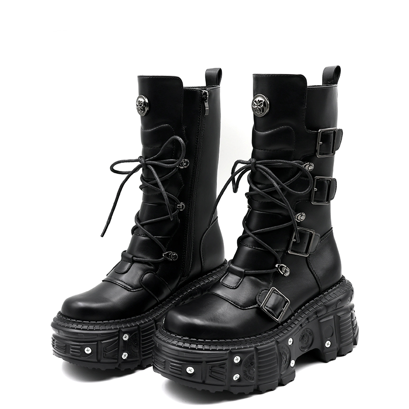 Our Super cool punk, biker style mid calf boots are the perfect boot for everyday wear.