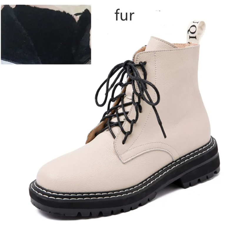 - Crafted with a Genuine Leather upper, a round toe, lace-up front closure, heel pull tabs, then set on a chunky block heel, anti-skid platform soles, seam detailing and finished with a coordinating Genuine Leather lining they are perfect for everyday wear or for something a bit more special. Choose them to give your looks an edgy marten themed twist.