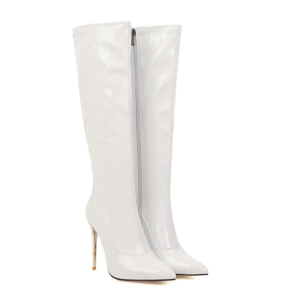 Package Includes: 1 x Pair Zip Up Knee High Stiletto Boots.