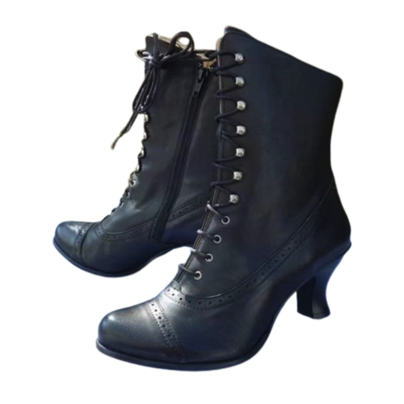 - These Victorian-inspired retro-renaissance style booties are crafted in beautiful PU leather and feature functional lace-up design and inside zipper closure, round toe, cushioned inner, ankle rise, seam detailing, barely there heel, and anti-slip rubber soles, make these shoes feel like you’re walking on air. Super comfortable and easy to walk in, you will want to wear them all day, every day.