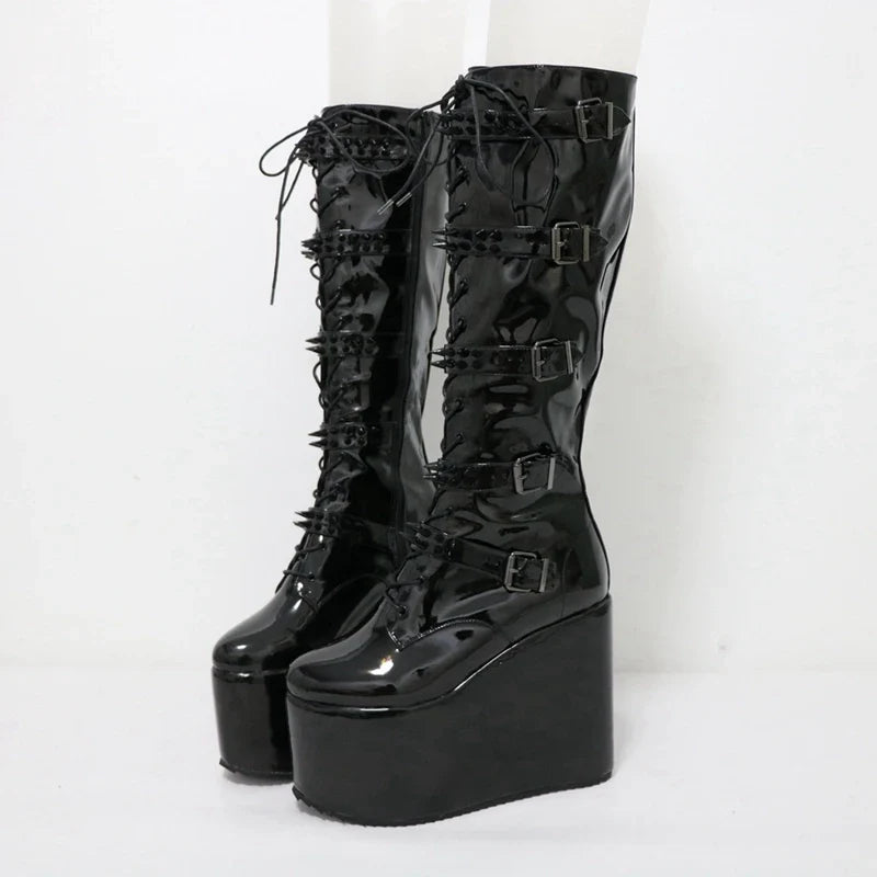 Gothic Punk Platform Boots, High Chunky Platform Boots, Riding Boots, Long Boots, Zipper Boots. PU Leather Boots. Combat Boots, Biker Boots, Punk Boots, Gothic Boots. Black Women's Boots.