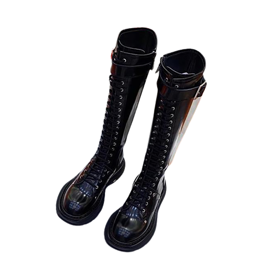 - These bold punk inspired boots are made of high quality Genuine Leather and feature anti-skid flat soles, round toes, front lace-up and buckle strap closure, reinforced seam detailing and side zip closure these military style boots will certainly make you stand out in a crowd.